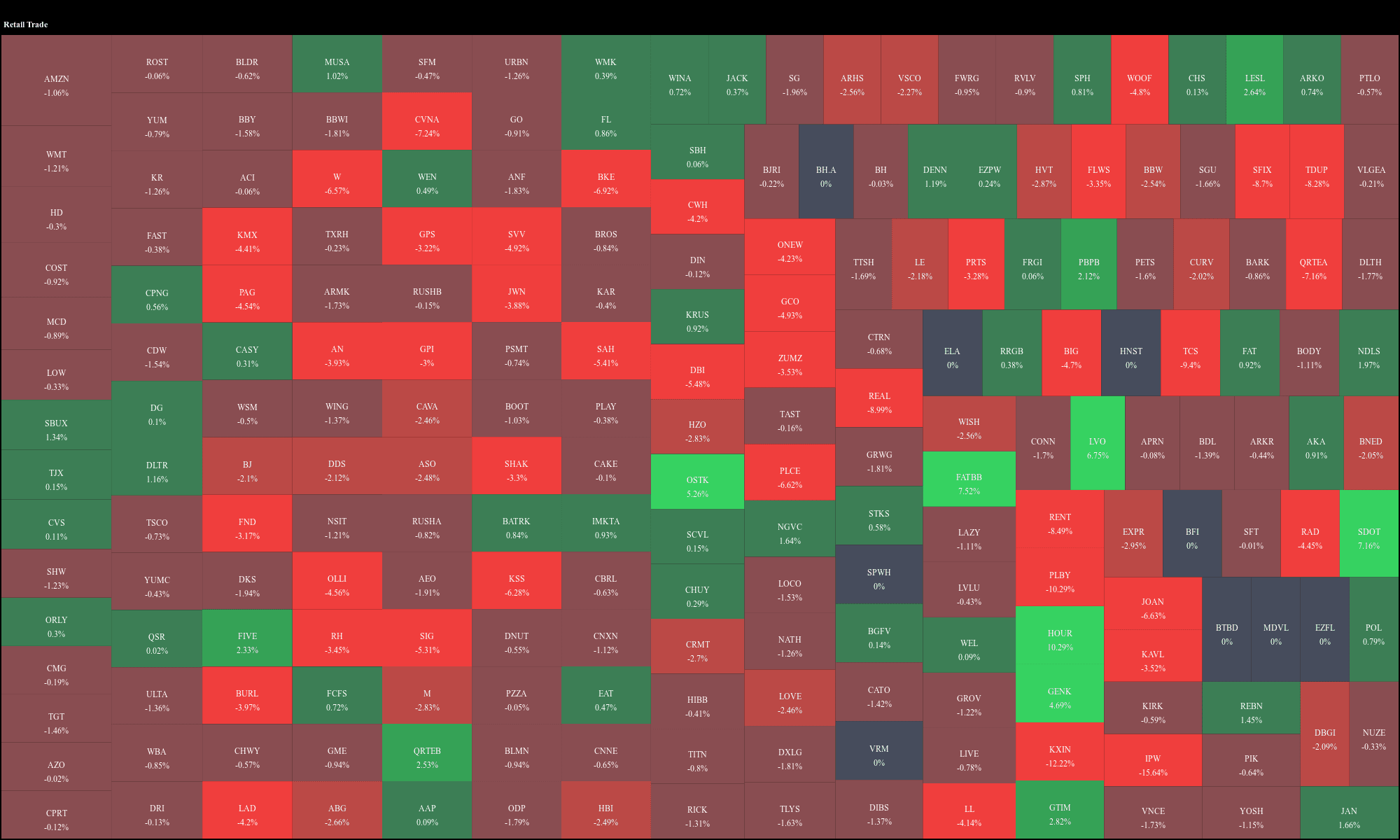 A visual snapshot of the Retail Trade group on October 5, 2023.